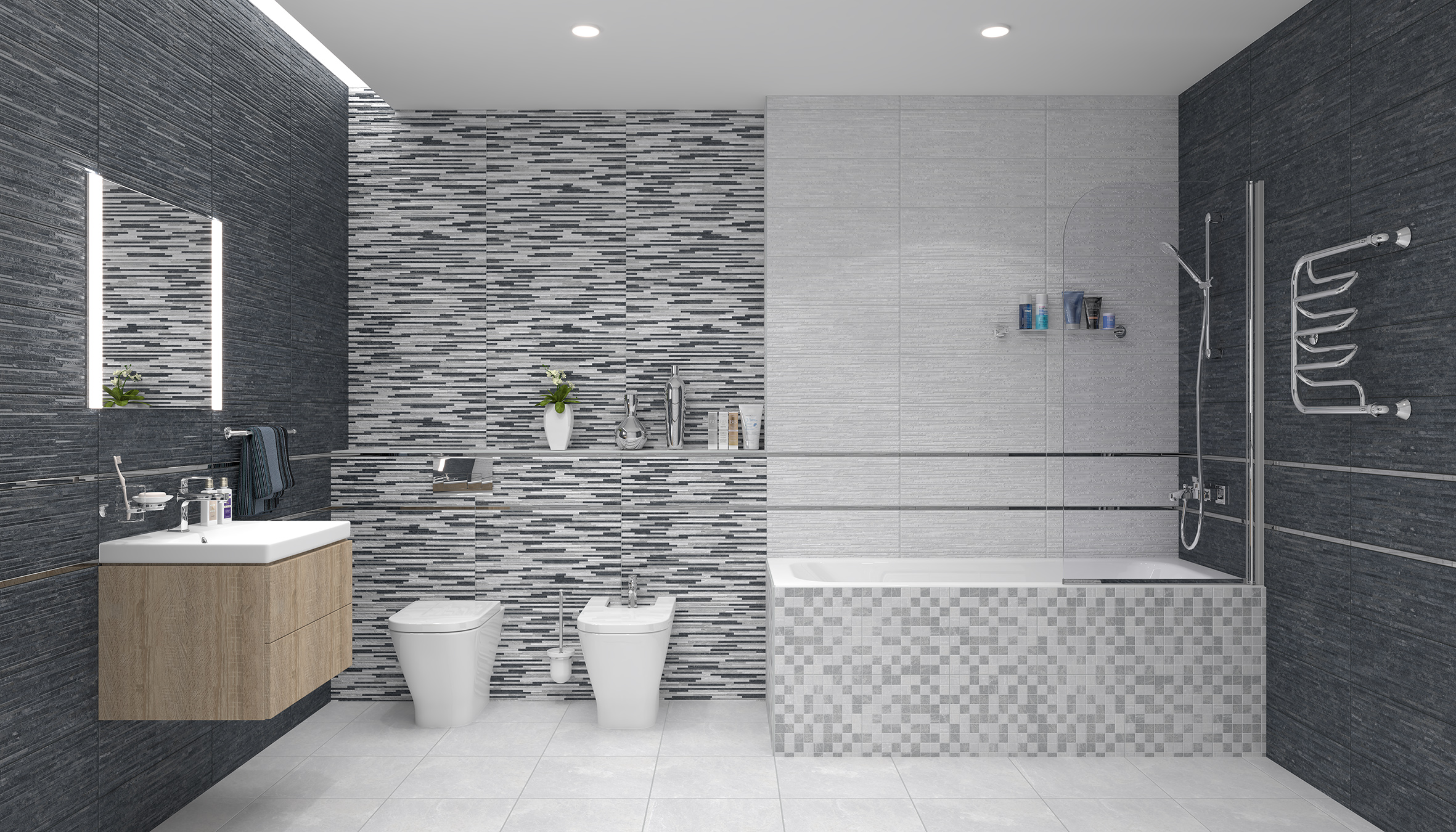 Алькор Плитка настенная серый мозаика 17-11-06-1188 20х60
