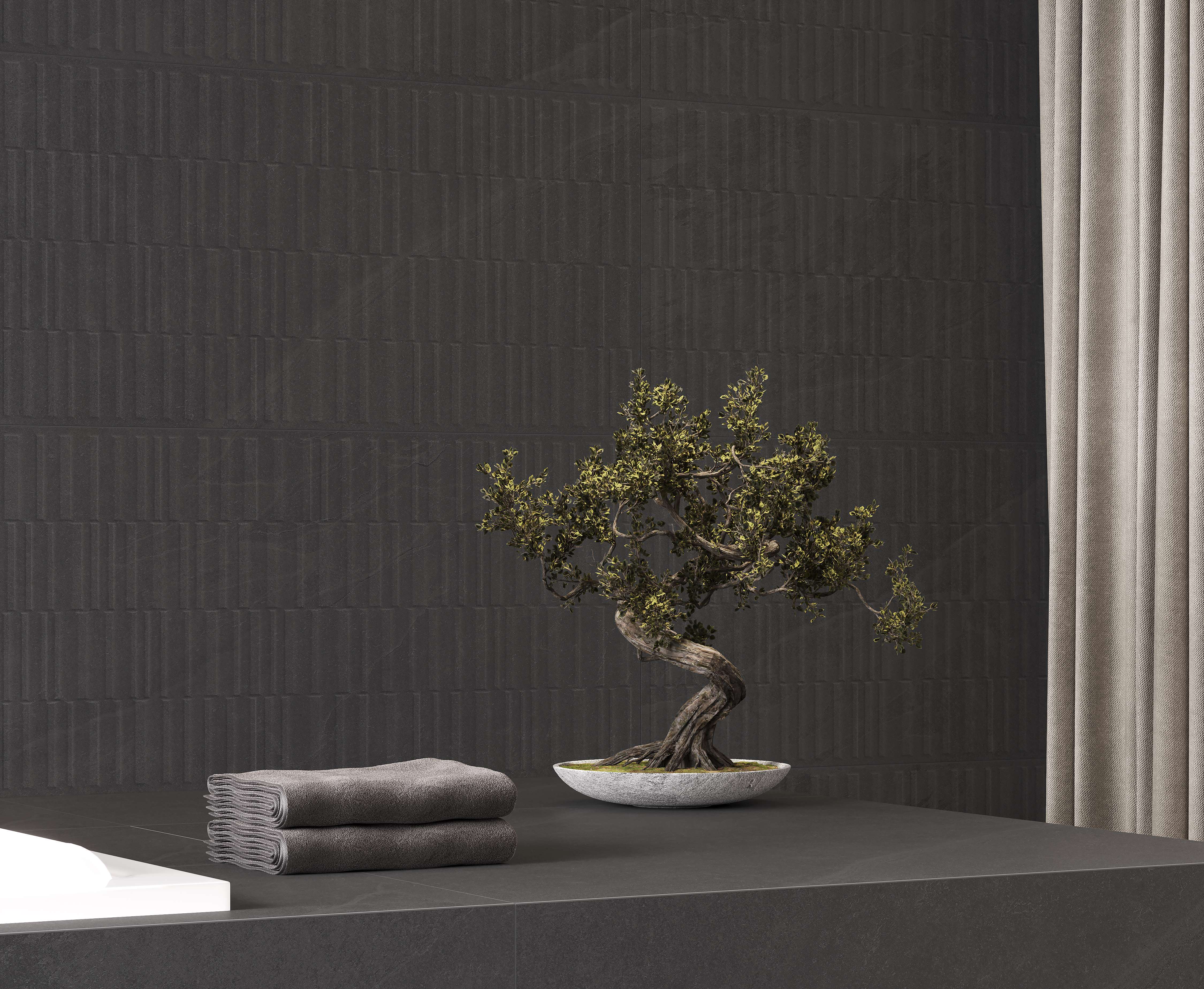 Бэдрок Шэдоу ПРО Деко Лайнс Керамогранит графитовый 60х120 матовый микроструктурный R10/A Бархат КР